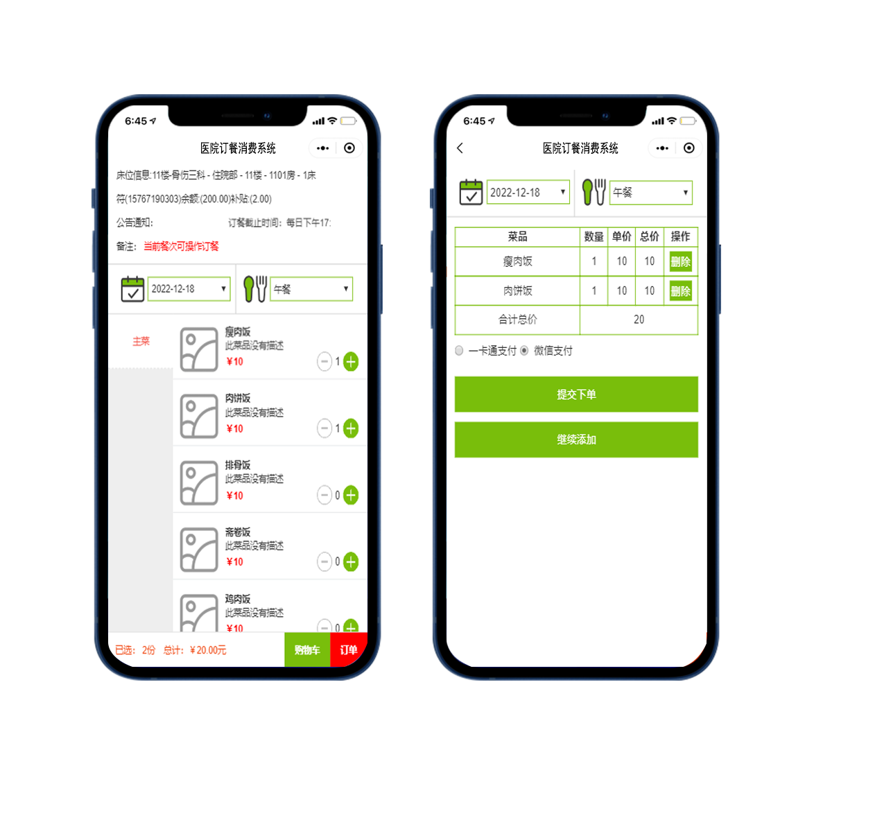 5、支持護(hù)工代點(diǎn)功能,可以通過手持機(jī)幫助特殊患者訂餐。